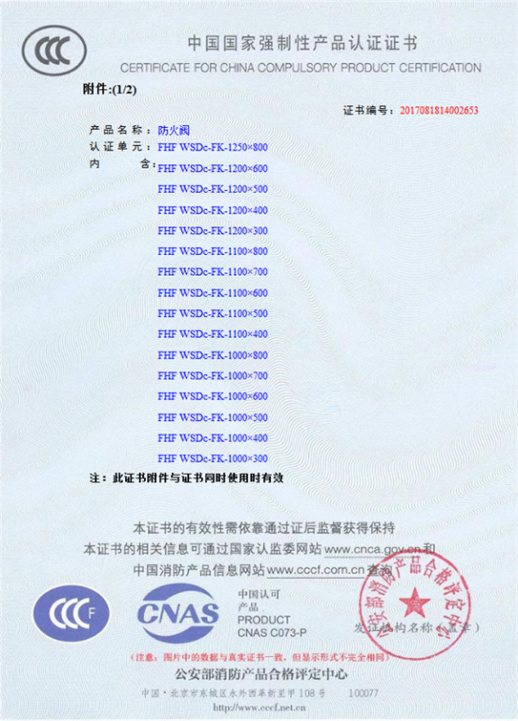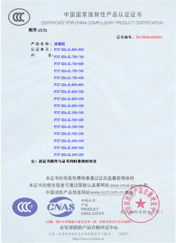 產(chǎn)品全通過國家消防檢測(cè)中心檢測(cè),獲得CCC證書